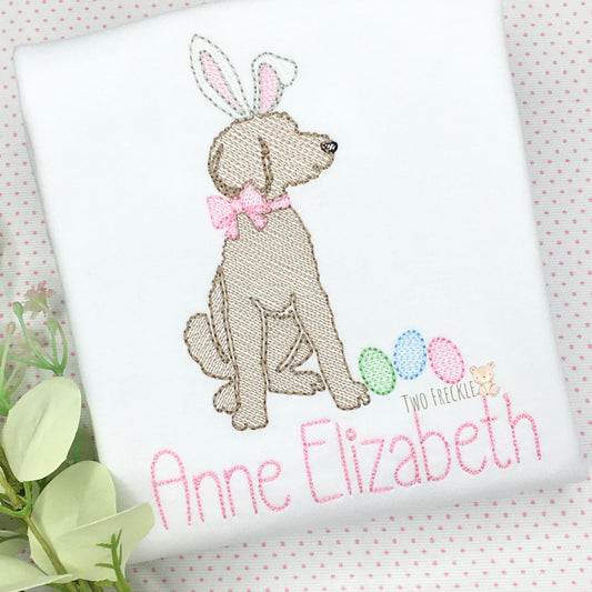 Girls Easter Bunny with Long Bows Embroidered Shirt