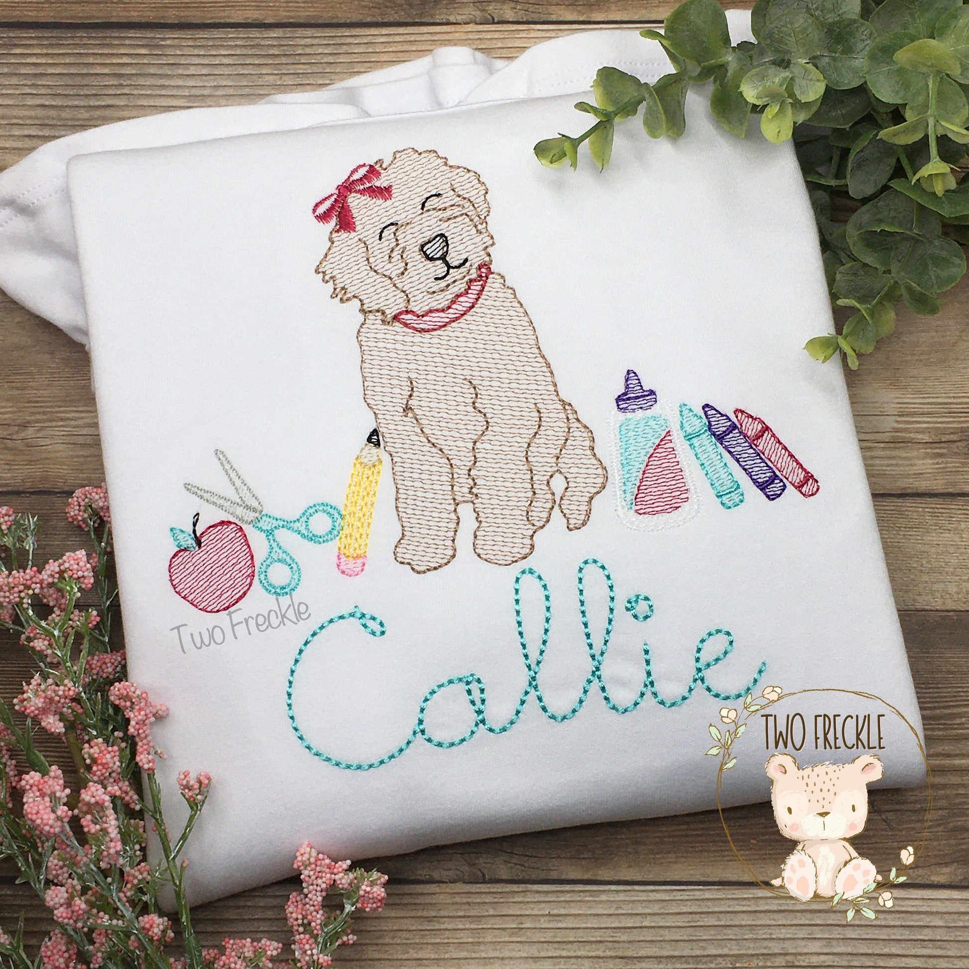 Girl Golden Doodle with School Supplies