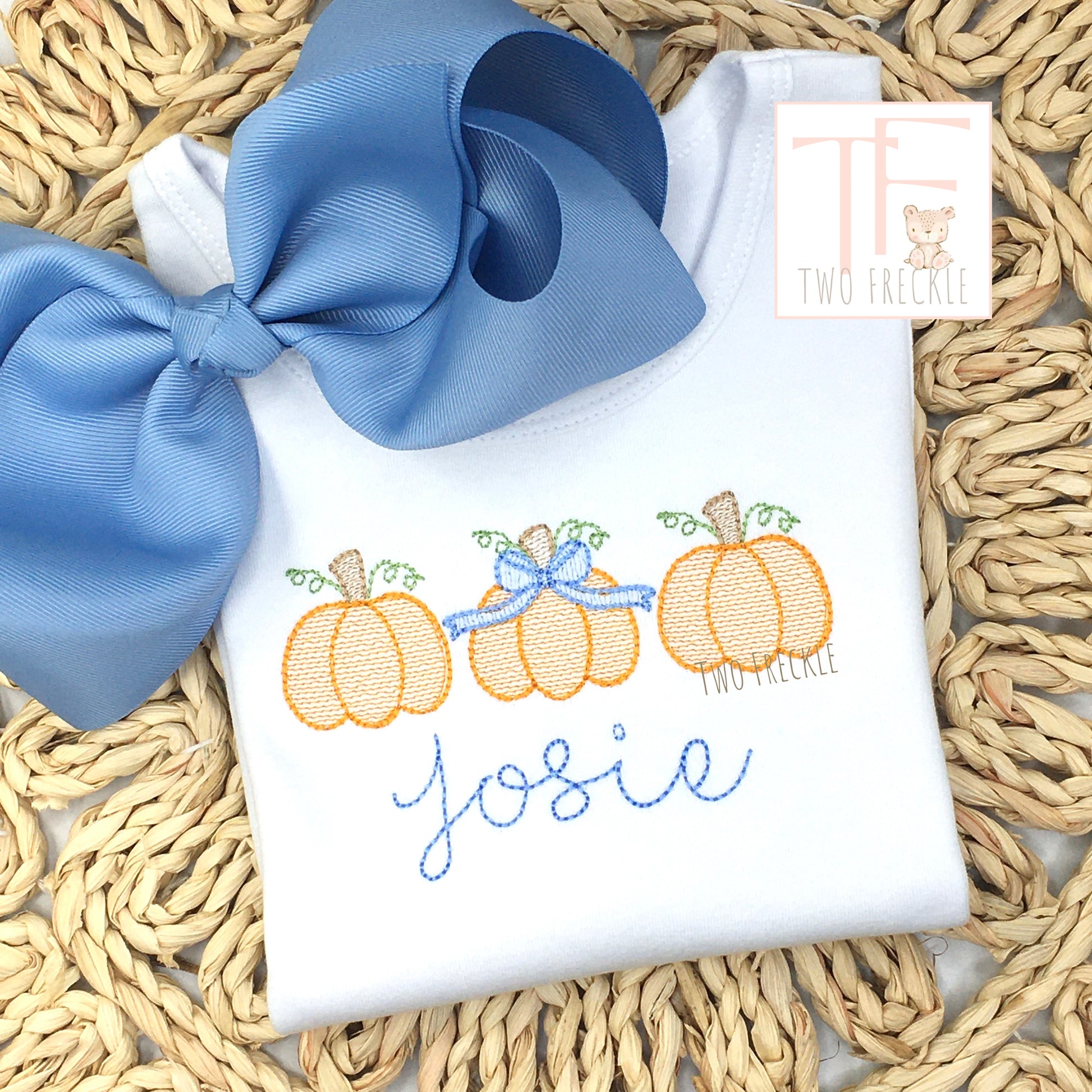 Sketch Pumpkins Trio with Bow Embroidered Shirt